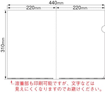 オンデマンド印刷のクリアファイルは、通常のオフセット印刷と比べて見劣りしない品質ですが、トナーインキを使用するため印刷強度が少し弱くなります(通常の使用状態では問題ありません)。